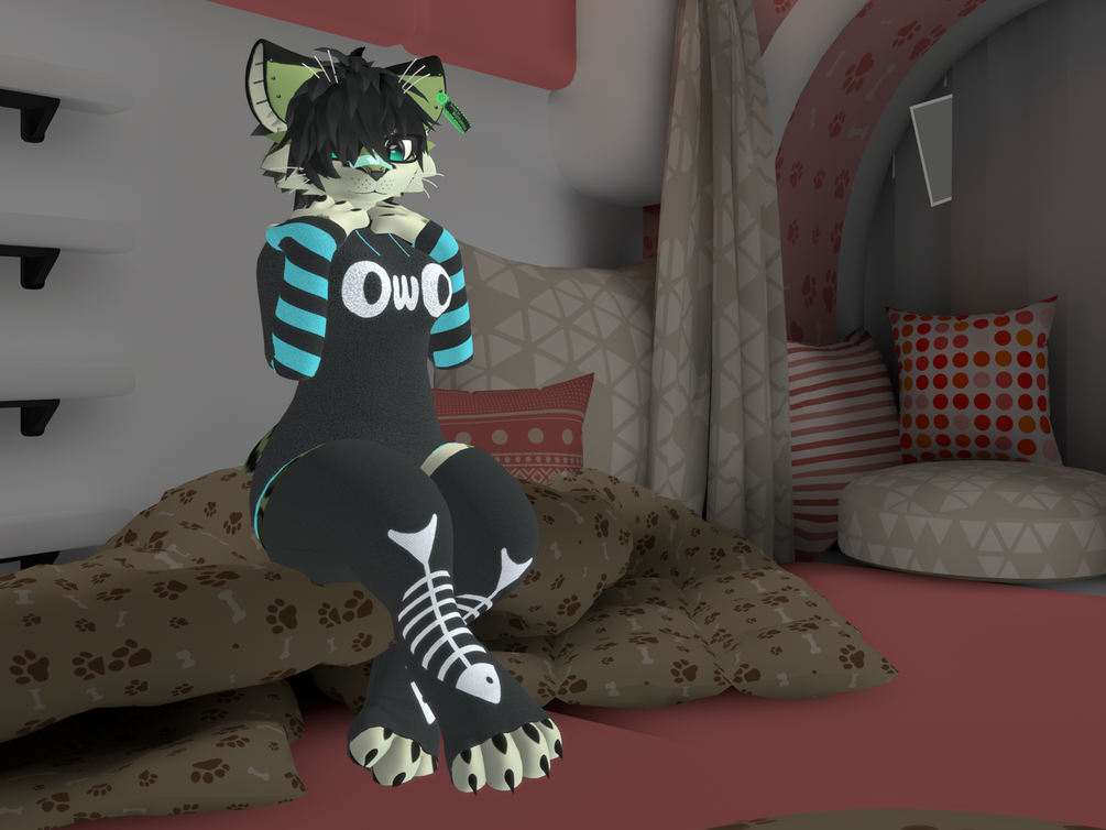 This outfit is slim and very soft, perfect for cuddles and lazy lounging. Comes with hoodie + undershirt, shorts and thigh highs.