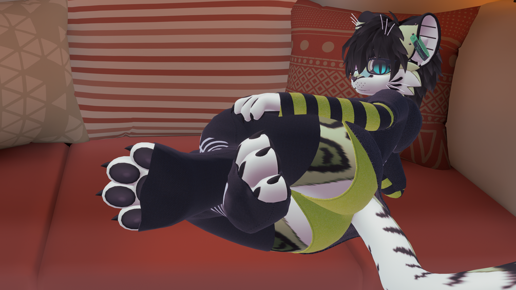 This outfit is slim and very soft, perfect for cuddles and lazy lounging. Comes with hoodie + undershirt, shorts and thigh highs.